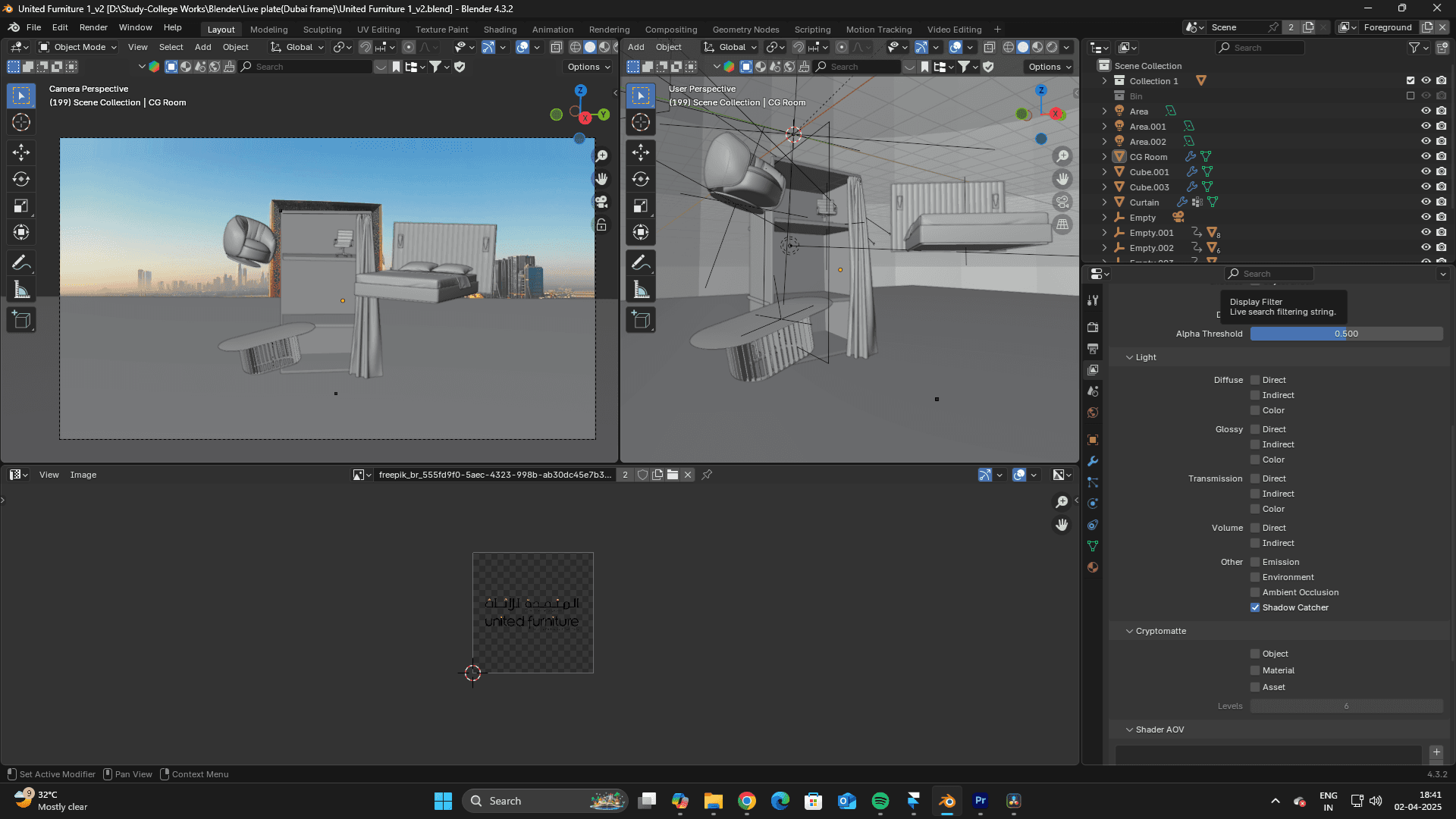 To maintain realism, I used HDRI lighting from the original footage to match the CG elements with the real-world environment. Shadows and reflections were carefully adjusted to ensure seamless blending.