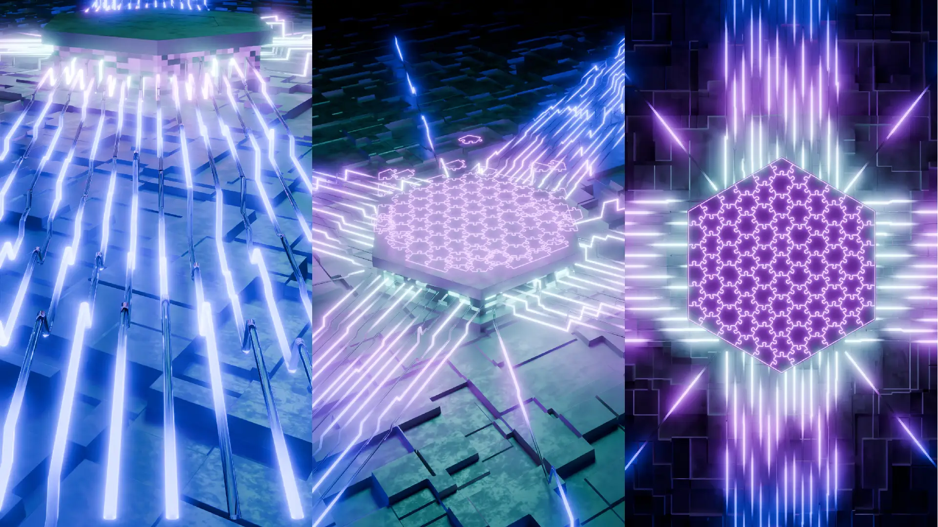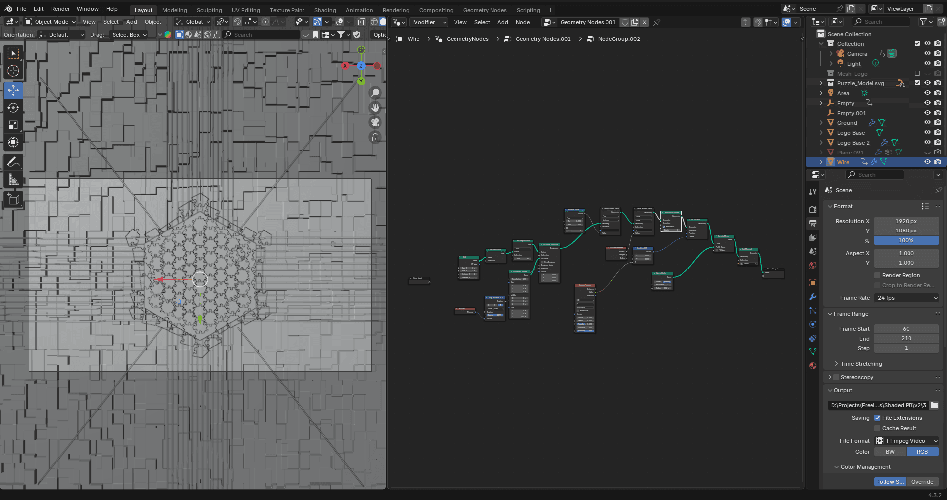 The first challenge was generating a hexagonal jigsaw puzzle, which was solved using a GitHub script that provided an SVG file of the desired shape. Once the puzzle pieces were extracted from the SVG, the next challenge was creating glowing sci-fi outlines for each piece. This was achieved by converting the meshes into curves and using Geometry Nodes to apply a futuristic texture while maintaining individual puzzle piece visibility. As the jigsaw puzzle assembled into a hexagonal formation, it had to seamlessly transition into the full logo. Since the original design only had outlines, a backup of the meshes was used. Texture nodes and an empty plain axis were applied to control the transition from puzzle outlines to the complete logo.